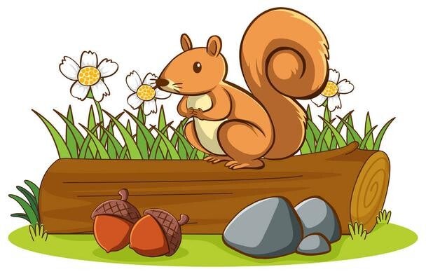 Maar wat is dat daar beneden in het mos? Ziet hij dat goed? Ja hoor, snel rent hij naar beneden en grijpt de noot stevig vast en brengt hem veilig naar het nest in de boom.